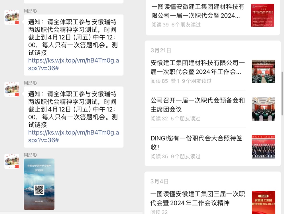 為進一步提高學習成效,公司創(chuàng)新性地采取了多種形式,開展全方位、全覆蓋的學習宣傳。通過職工大會把兩級職代會精神落到實處,結(jié)合當前發(fā)展需要,制定了切實可行的工作方案,明確目標、任務和時間節(jié)點。通過官方公眾號推送學習資料、開展兩級職代會精神學習答題等活動,增強了學習針對性和有效性。這些舉措不僅讓學習更加生動有趣,也激發(fā)了員工的參與熱情。