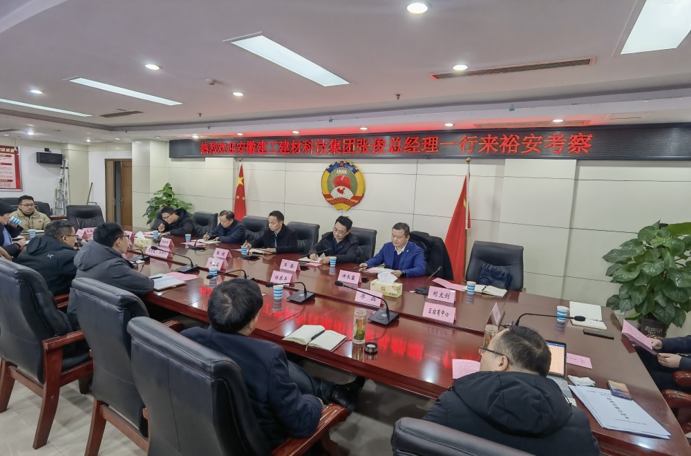 2月6日下午,建工建材黨委副書記、總經(jīng)理張俊率隊(duì)赴六安市裕安區(qū)考察交流。裕安區(qū)委副書記、區(qū)長(zhǎng)仰玉晶熱情接待,雙方就深入開展合作進(jìn)行座談交流。