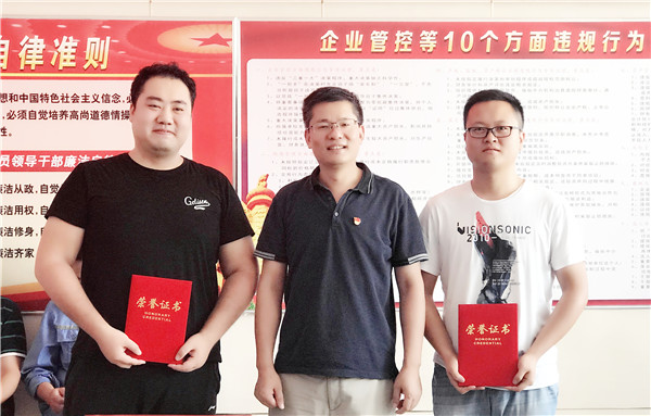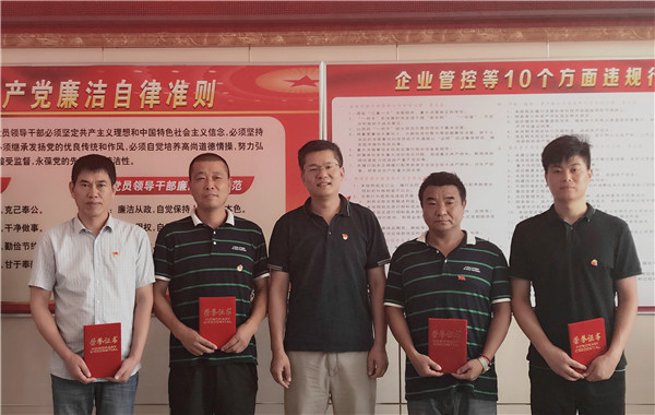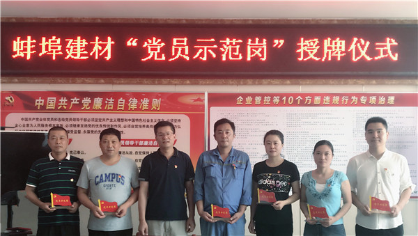 在表彰大會上,蚌埠建材黨支部副書記、工會主席沙薇莉首先宣讀了蚌埠建材優(yōu)秀黨員表彰決定,并對四位優(yōu)秀黨員頒發(fā)了榮譽(yù)證書及獎金;接著,蚌埠建材黨支部組織委員、副經(jīng)理施松宣讀了蚌埠建材黨員先鋒示范崗評選結(jié)果并進(jìn)行了授牌;隨后,蚌埠建材副經(jīng)理陳正勇宣讀了安建建材《我與企業(yè)改革共成長》征文活動獲獎的職工名單并進(jìn)行了頒獎;大會最后,施松同志帶領(lǐng)全體黨員面向黨旗進(jìn)行了入黨宣誓儀式,重溫入黨誓詞。