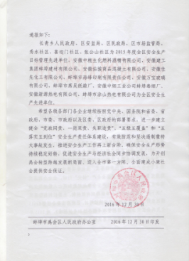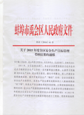 蚌埠建材獲得蚌埠市禹會(huì)區(qū)政府 安全生產(chǎn)先進(jìn)單位