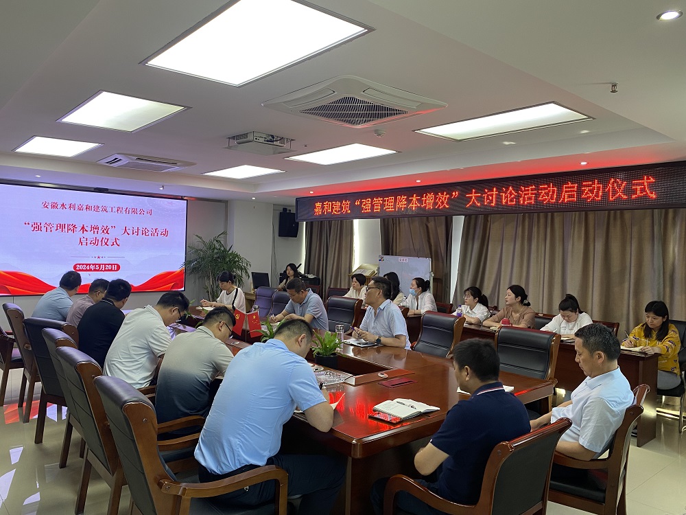 為提升精細化管理水平,實現(xiàn)提質(zhì)增效目標,營造大討論活動氛圍,5月20日下午,嘉和建筑在和順大廈15樓會議室召開“強管理降本增效”大討論活動啟動儀式,嘉和建筑領(lǐng)導班子、機關(guān)全體人員、蚌項目負責人以及核算管理人員參加啟動儀式。