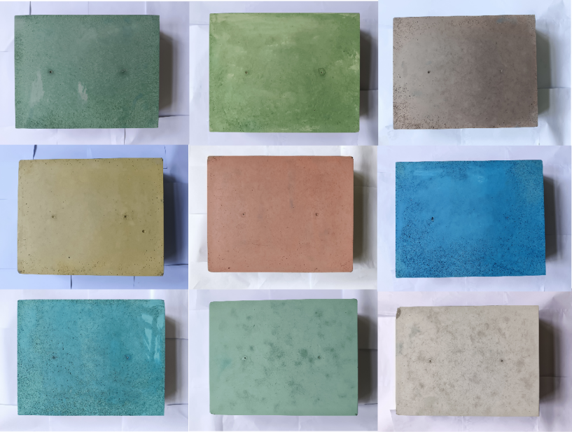 為貫徹落實(shí)公司一屆一次職代會(huì)會(huì)議精神,建材產(chǎn)業(yè)研究院積極圍繞新型建筑材料開展相關(guān)技術(shù)探索,反復(fù)的試配攻關(guān),不斷優(yōu)化調(diào)整配合比,進(jìn)行試驗(yàn)、檢測(cè)、分析、改進(jìn),最終調(diào)配出多套高耐久、高強(qiáng)、工作性優(yōu)異,涵蓋牛油果色、白色、天空藍(lán)、巧克力色等十余種顏色彩色混凝土配合比。