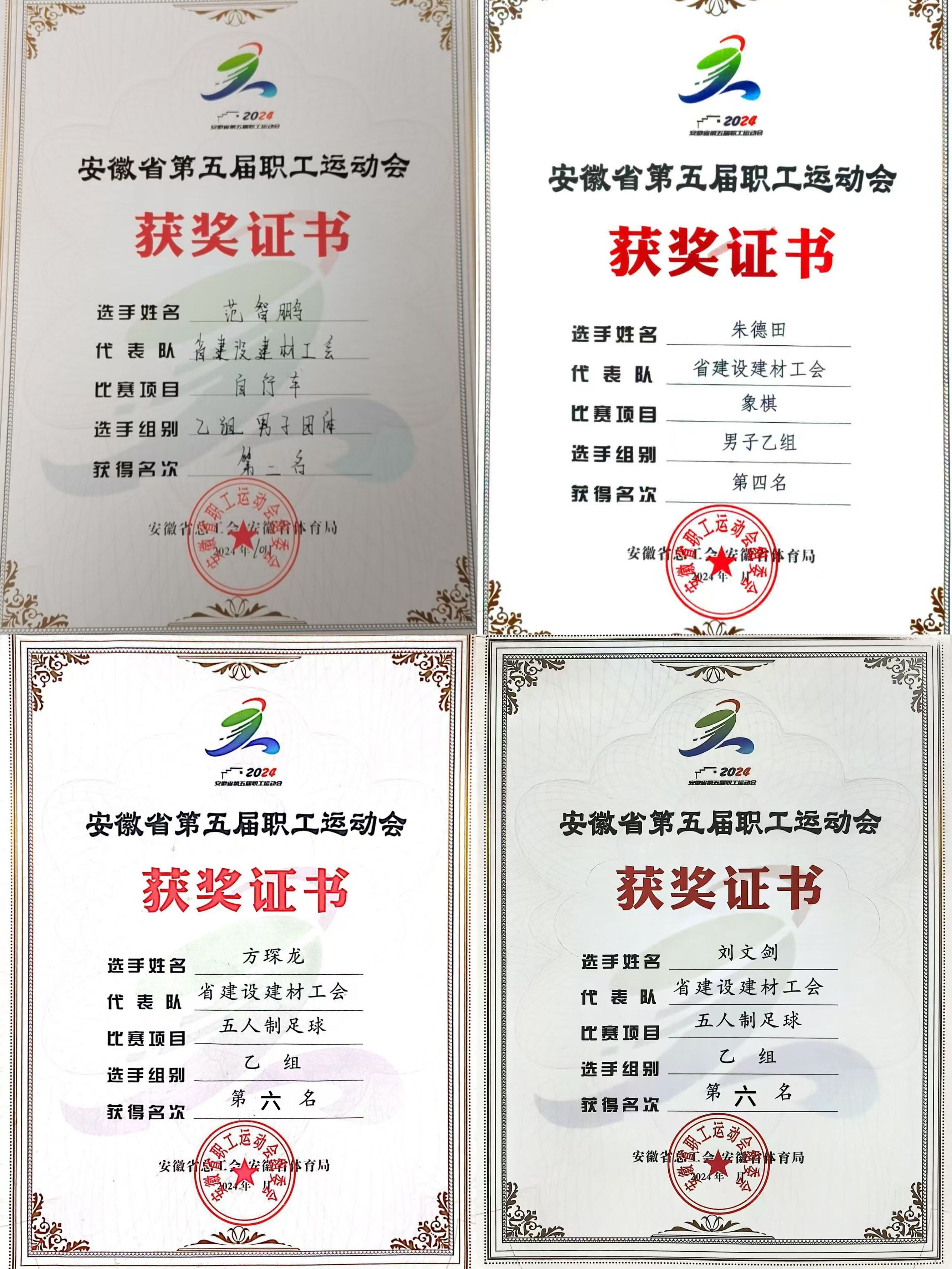 2024年9月至11月,由省總工會、省體育局主辦,以“健康安徽、活力工會、快樂運(yùn)動”為主題的安徽省第五屆運(yùn)動會成功舉辦,建工建材多名運(yùn)動健兒積極參與取得多項(xiàng)榮譽(yù)。