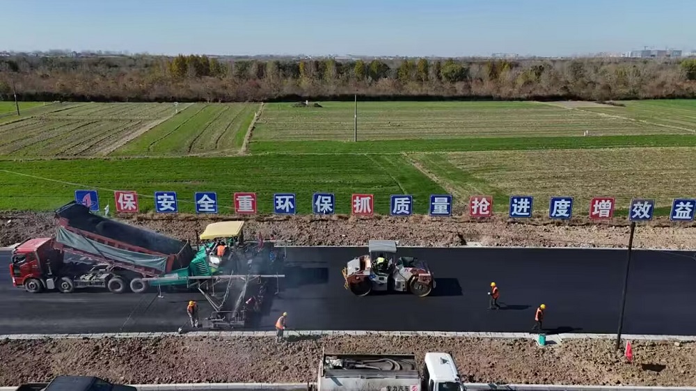 嘉和建材科技園參建的Y011蚌淮高速項(xiàng)目攤鋪瀝青路面長(zhǎng)3.44km,寬12米。自2024年10月份進(jìn)場(chǎng)施工以來(lái),項(xiàng)目部集中組織施工人員、鋪筑設(shè)備和壓路機(jī)開展施工攻堅(jiān),在確保安全和質(zhì)量的前提下,力抓工期節(jié)點(diǎn)主線,積極與參建各方溝通協(xié)調(diào),保質(zhì)保量完成了瀝青攤鋪任務(wù)。