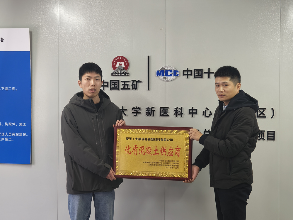 12月26日,安徽瑞特榮獲中國(guó)十七冶集團(tuán)有限公司安徽醫(yī)科大學(xué)新醫(yī)科中心新校區(qū)施工總承包項(xiàng)目2024年“優(yōu)質(zhì)供應(yīng)商”稱(chēng)號(hào)。