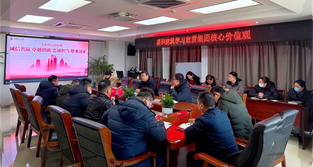 2月10日上午,嘉和建筑組織領(lǐng)導(dǎo)班子、部門負責人、項目負責人以及全體營銷人員學習宣貫集團核心價值觀。
