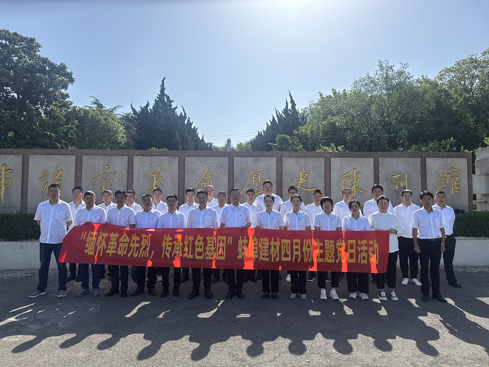 為緬懷革命先烈,賡續(xù)紅色基因,弘揚愛國主義精神,4月25日,蚌埠建材黨支部組織領導班子、全體黨員及骨干員工赴蚌埠市革命歷史陳列館開展"緬懷革命先烈,傳承紅色基因"4月份主題黨日活動。