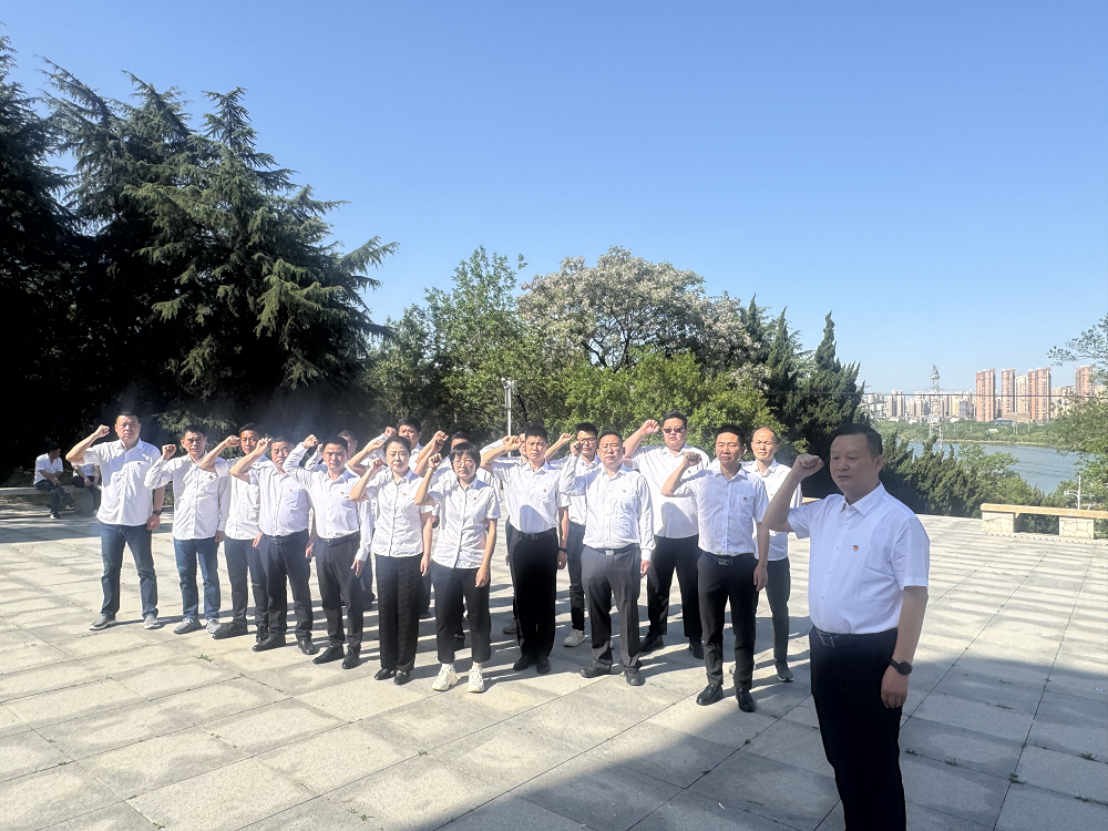在肅穆的革命烈士紀念碑前,黨支部書記許長璽帶領全體黨員及骨干員工一起回顧光輝的革命歷史,感受革命先烈的忠誠與無畏,面向革命烈士紀念碑肅立默哀,敬獻花籃,表達深切的追思和崇高敬意。之后,許長璽帶領全體黨員莊嚴宣誓,重溫入黨誓詞。