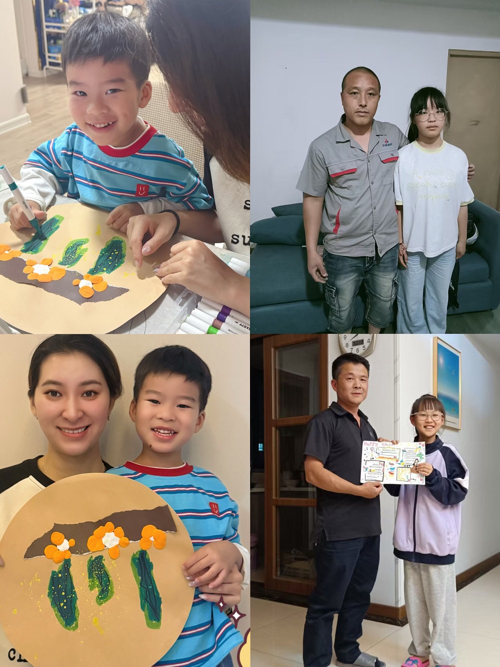 孩子們紛紛大顯身手,稚嫩的歌聲、靈動的舞姿贏得陣陣掌聲。 趙宇琪小朋友深情朗誦《感恩父母》,字里行間滿是對父母的感恩之情。年紀(jì)較小的孩子們和家長齊心協(xié)力,用黏土、彩紙等材料制作出獨(dú)一無二的作品。有的孩子為爸爸捏了個 “超級英雄”,有的為媽媽折出漂亮的花朵,每一件作品都承載著孩子對父母的愛。孩子們用稚嫩的畫筆描繪出心中父母的樣子,溫馨畫面令人動容。