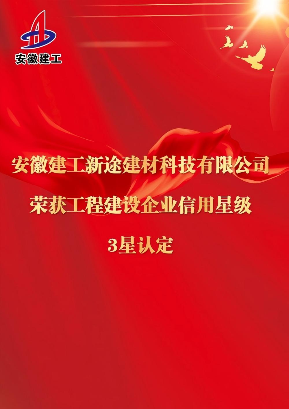 新途建材獲工程建設(shè)企業(yè)信用星級3星認(rèn)定