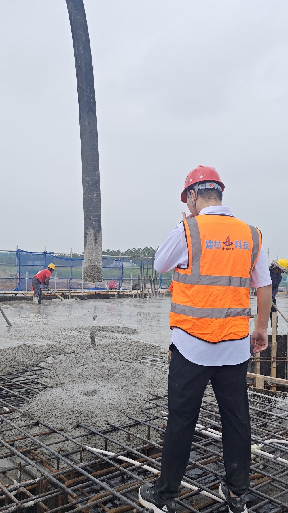 嘉和站副站長(zhǎng)馮開(kāi)團(tuán)堅(jiān)守施工現(xiàn)場(chǎng),緊盯商砼質(zhì)量狀態(tài),對(duì)攪拌、運(yùn)輸?shù)拳h(huán)節(jié)嚴(yán)格把關(guān),以高度責(zé)任感保障工程質(zhì)量。