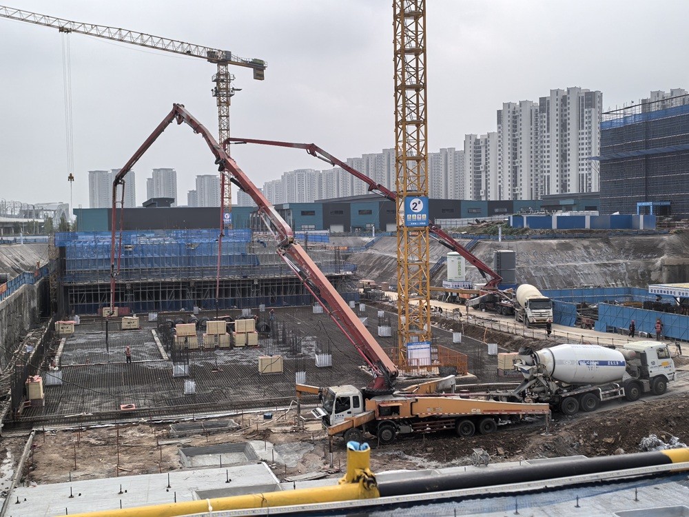 為確保澆筑順利,建工瑞特新材、建工擎工新材領(lǐng)導(dǎo)班子國慶期間多次赴項目一線勘察場地、督導(dǎo)進(jìn)度,公司一線員工堅守崗位,緊密配合,針對設(shè)備配置、澆筑流程等關(guān)鍵環(huán)節(jié),制定了科學(xué)合理的施工方案,明確了各環(huán)節(jié)的責(zé)任分工與時間節(jié)點,為澆筑作業(yè)的順利推進(jìn)提供了全方位、強有力的保障。