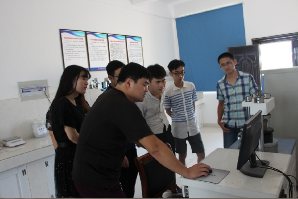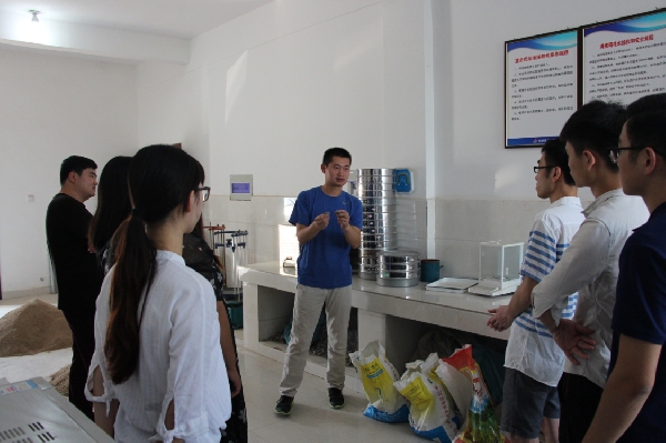 質(zhì)量管理中心員工帶領(lǐng)實(shí)習(xí)生現(xiàn)場參觀了膠凝材料室、集料室、試拌室、力學(xué)室和養(yǎng)護(hù)室,詳細(xì)介紹了質(zhì)量管理過程中使用的儀器設(shè)備與試驗(yàn)方法,就水泥膠砂強(qiáng)度、砂石篩分析以及混凝土抗壓強(qiáng)度等試驗(yàn)進(jìn)行了演示。還系統(tǒng)介紹了預(yù)拌混凝土與干粉砂漿的生產(chǎn)工藝流程,對各個環(huán)節(jié)的質(zhì)量控制作了充分講解,并針對實(shí)習(xí)生提出的問題進(jìn)行了逐一解答。