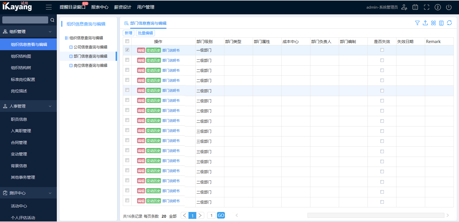 User can change organization structures by adding, deleting or moving child nodes so as to adapt to the changing organizational system;