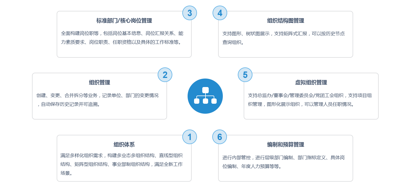 When major organizational change occurs, the results of organizational structure adjustments can be simulated in advance. This is suitable for fast-growing enterprises.