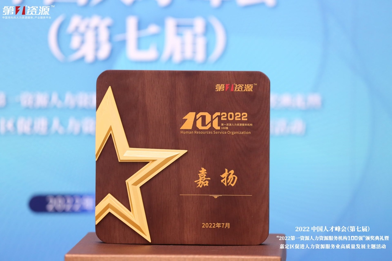嘉揚榮獲第一資源“2022中國人力資源服務(wù)機構(gòu)100強”